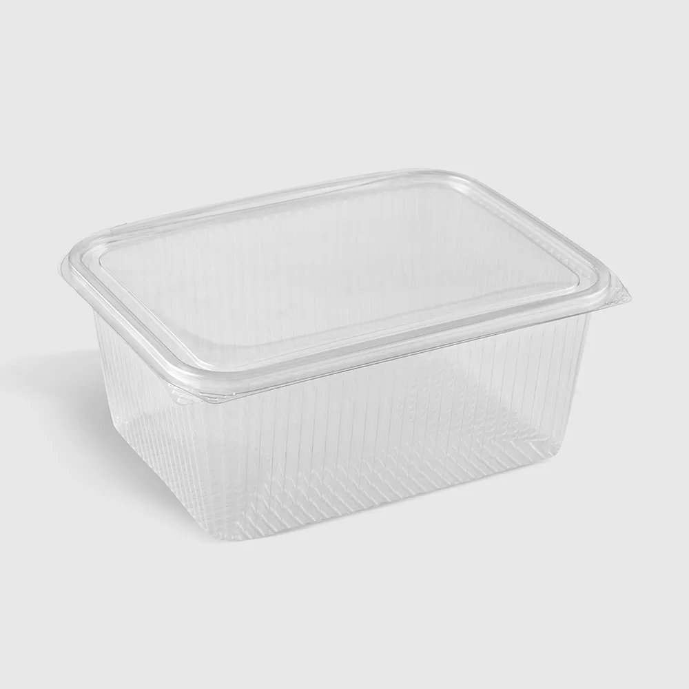 Squared Hinged Lid Plastic Container (PET) – 1250 cc